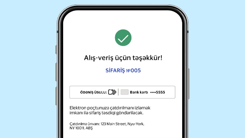 Onlayn sifarişlərin etibarlı və rahat tərtib edilməsi və ödənişi